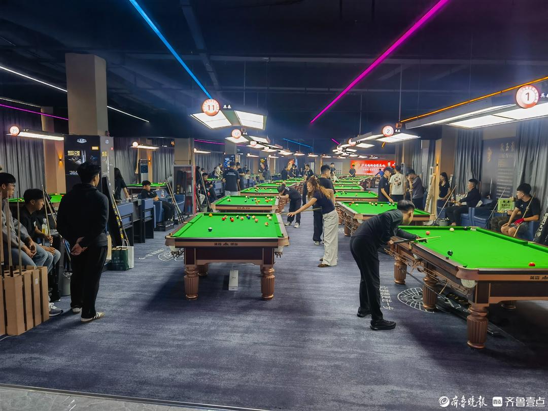 赛场上,选手们俯身瞄准、沉稳出杆,每一记精准走位与巧妙击球都展现着专业素养。来自济南的17岁选手马千里首轮对阵济宁选手李振,凭借流畅的连续击球拿下开门红;烟台13岁小将田其浩则在落后两局的情况下稳住心态,最终以7:4逆转晋级,成为首日赛事的焦点人物之一。场边观赛区座无虚席,教练的战术指导声、观众的喝彩声与球体撞击声交织成活力十足的赛场交响曲。